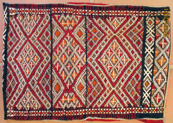 Most bags are woven using only local wools, goat and sometimes camel hair. Embellishments, both superstitious and religious, are frequent. Durable goat hair is used for closing loops and for selvedges.